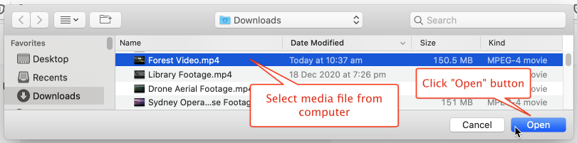 Click Browse to find a subtitles/captions file on your computer (if your file is not in the .vtt format, you may find a conversion service on the Internet):